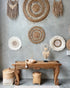 Eye catching design, Spiral Water Hyacinth Wall Decor comes in two sizes and features tassel fringing on outside of woven design base.