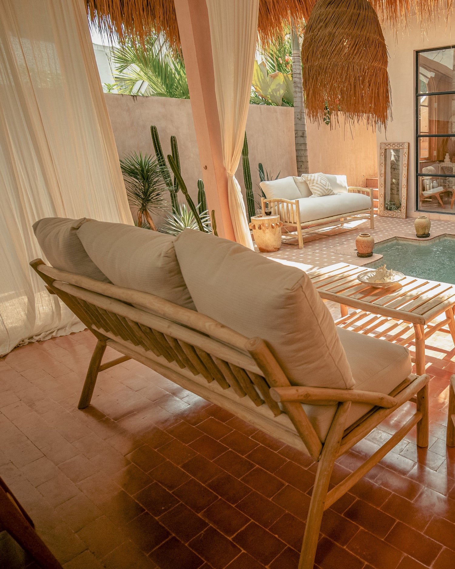 Handcrafted by our artisans from natural teak branches and sanded to a raw finish, these pieces include 1, 2 and 3 seater options. Super comfortable and elegant. Sofa & cushion covers are removable for easy care.